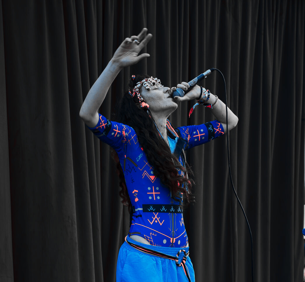 Her solo performances are immersive journeys that balance intensity and intimacy. Switching seamlessly between Spanish and Italian, she creates a living tapestry of layered vocals, percussive grooves, and harmonic colors. Each show becomes both a danceable ritual and a reflective experience, inviting audiences to move, listen, and connect. Her warm, radiant voice and powerful stage presence transform the stage into a space of collective emotion, storytelling, and empowerment.